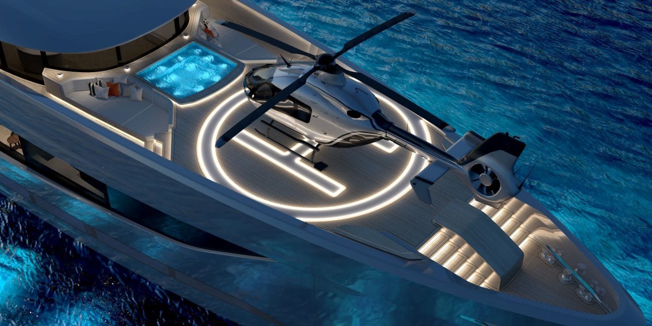 For added convenience and adventure, LIVIA includes a touch-and-go helicopter pad on the bow, enhancing accessibility for the owner and guests.