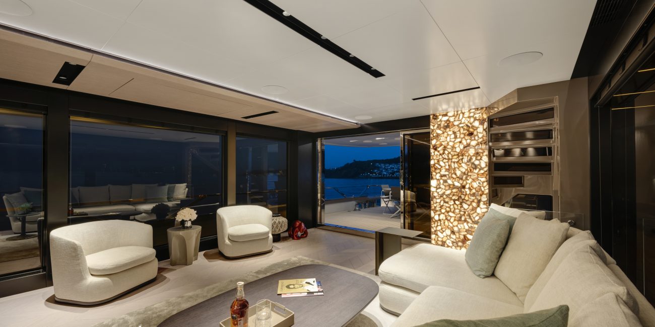 The yacht will be powered by triple Volvo Penta IPS 1050 drives for a top speed of 22 knots and a cruising speed of 16 knots. This is the first time IPS propulsion has been installed on a steel-hulled yacht, requiring close collaboration with Volvo Penta and Profjord in Sweden for the engineering and naval architecture.